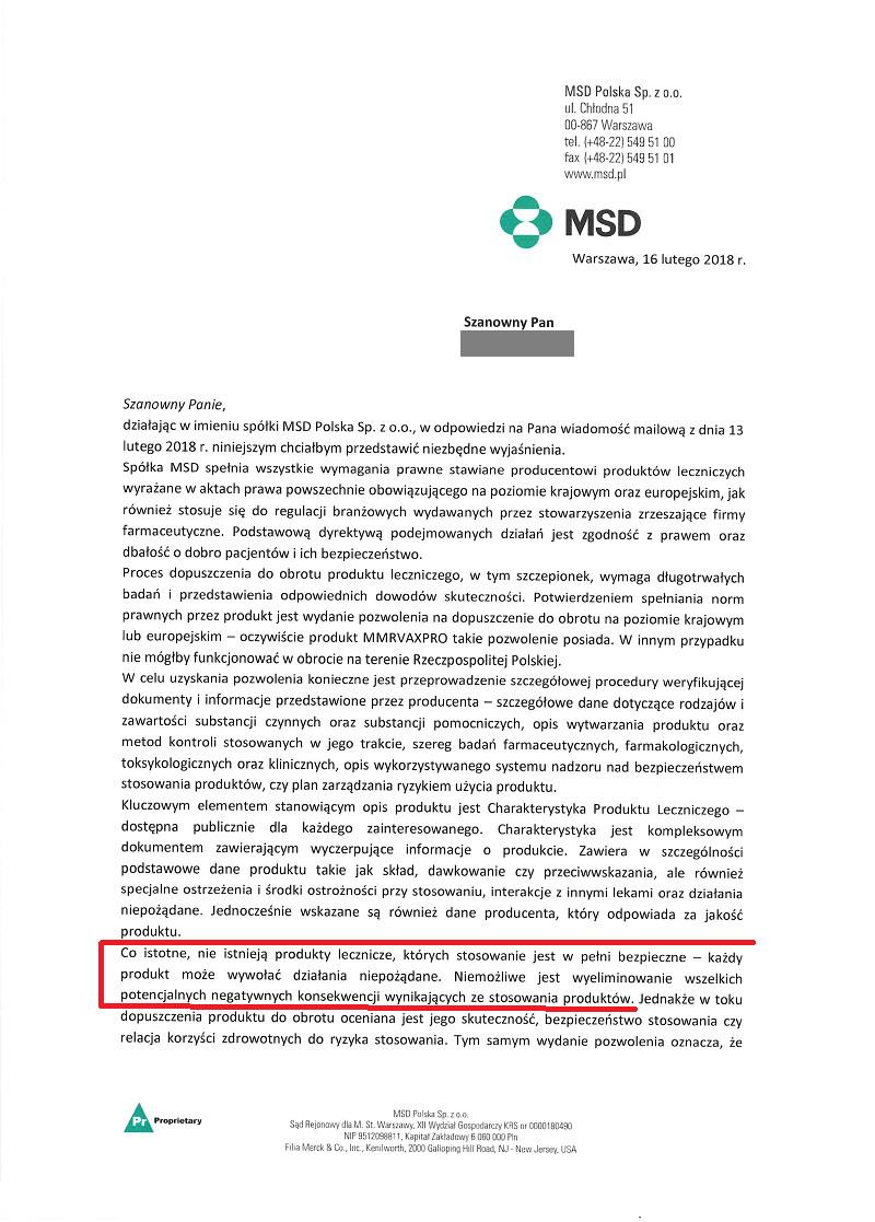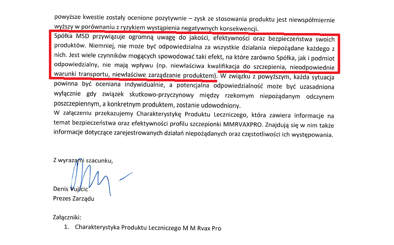 Jednocześnie, choć wcale go to nie cieszy, zmuszony jest poinformować matkę, że negatywne następstwa podania dziecku szczepionki są w praktyce nieprzewidywalne. Choć bardzo tego nie chce, musi również poinformować, że w Polsce nie prowadzi się badań, które monitorowałyby wpływ Programu Szczepień Ochronnych na ogólną kondycję zdrowotną dzieci. Nie wiadomo więc, czy dzieci szczepione są zdrowsze, niż nieszczepione, czy odwrotnie. Nie prowadzi się również badań wpływu szczepień ochronnych na ryzyko występowania u dzieci różnych chorób, na przykład nowotworowych.