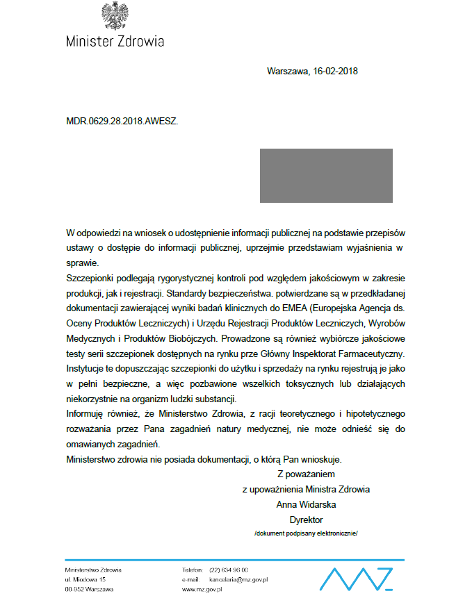 Oto petycja do Ministra Zdrowia o niewielką modyfikację treści ustawy o zapobieganiu oraz zwalczaniu zakażeń i chorób zakaźnych u ludzi. Jeśli Minister Zdrowia rozpatrzy ją pozytywnie, to wreszcie rodzice będą wyrażali zgodę na szczepienie w pełni świadomie – wiedząc, co ryzykują.