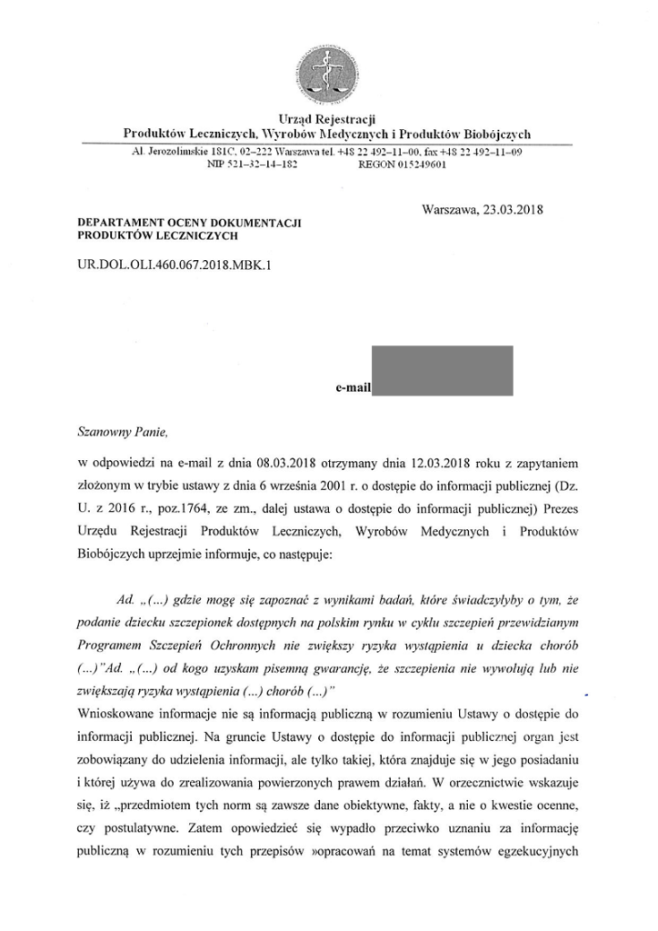 One są tak bezpieczne, że Urząd Rejestracji Produktów Leczniczych odmawia udzielenia informacji, gdzie można zapoznać się z wynikami badań świadczących o tym, że szczepionki są bezpieczne oraz przyznaje, że nie dysponuje żadnymi dokumentami, które świadczyłyby o tym, że ludzie szczepieni są zdrowsi, niż ludzie nieszczepieni…