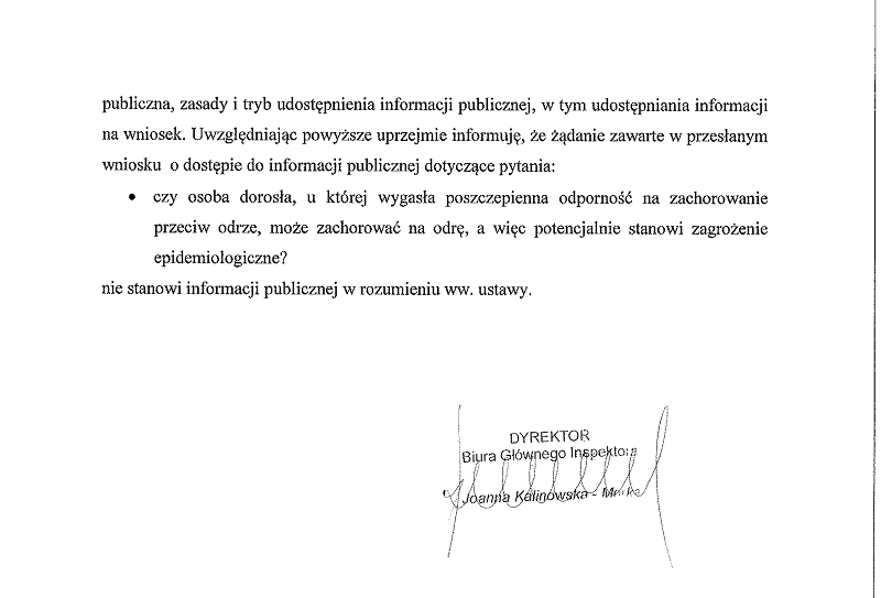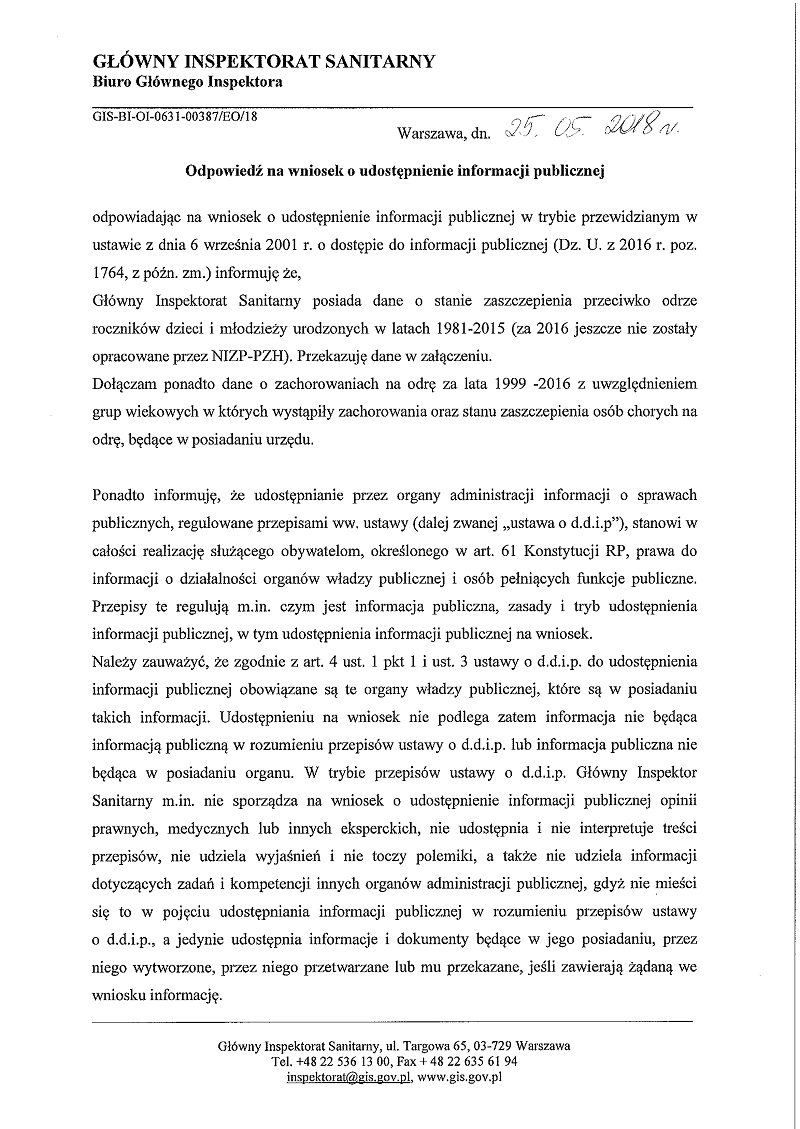 - ile osób w Polsce jest obecnie zaszczepionych przeciw odrze? Jeśli PPIS nie dysponuje takimi informacjami, to wnoszę o wskazanie kompetentnego organu, który dysponuje takimi informacjami.