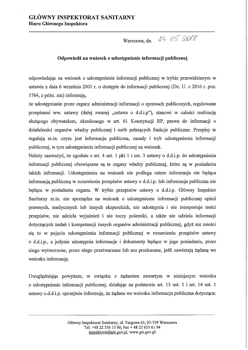 W nawiązaniu do w/w pisma PPIS w Pruszczu Gdańskim, niniejszym wnoszę o udostępnienie mi następującej informacji publicznej:
