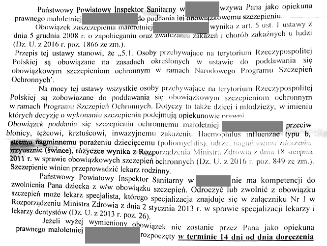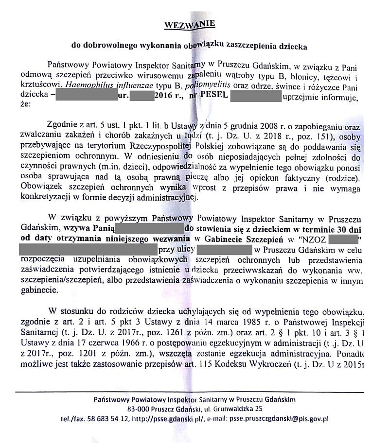 Tym razem w roli głównej Państwowy Powiatowy Inspektor Sanitarny z Pruszcza Gdańskiego,ze swoim oryginalnym „wezwaniem do dobrowolnego wykonania obowiązku”. Oryginalnym, bo inspekcja sanitarna coraz śmielej sobie poczyna strasząc rodziców „ruchami antyszczepionkowymi” i zapewniając, że szczepienia są bezpieczne, bo są bezpieczne.