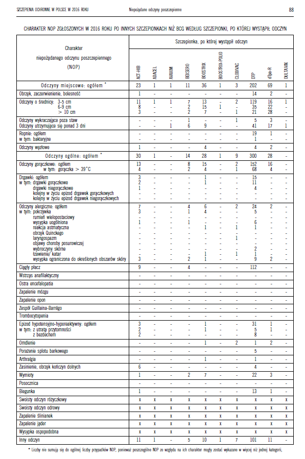 Potem zaczyna się szczegółowa prezentacja NOP-ów po kolei dla każdej szczepionki i wygląda to tak:
