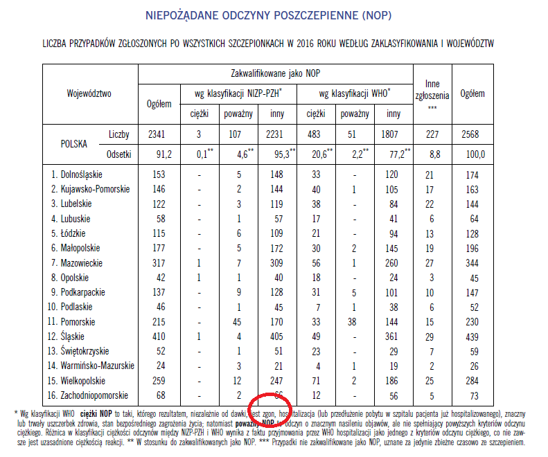 2016 – 0 (słownie: ZERO) zgonów “związanych czasowo ze szczepieniem” (czyli zgłoszonych jako ciężki NOP)