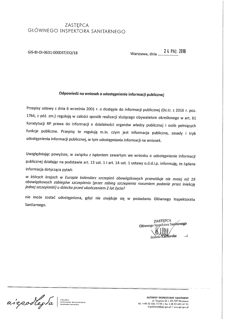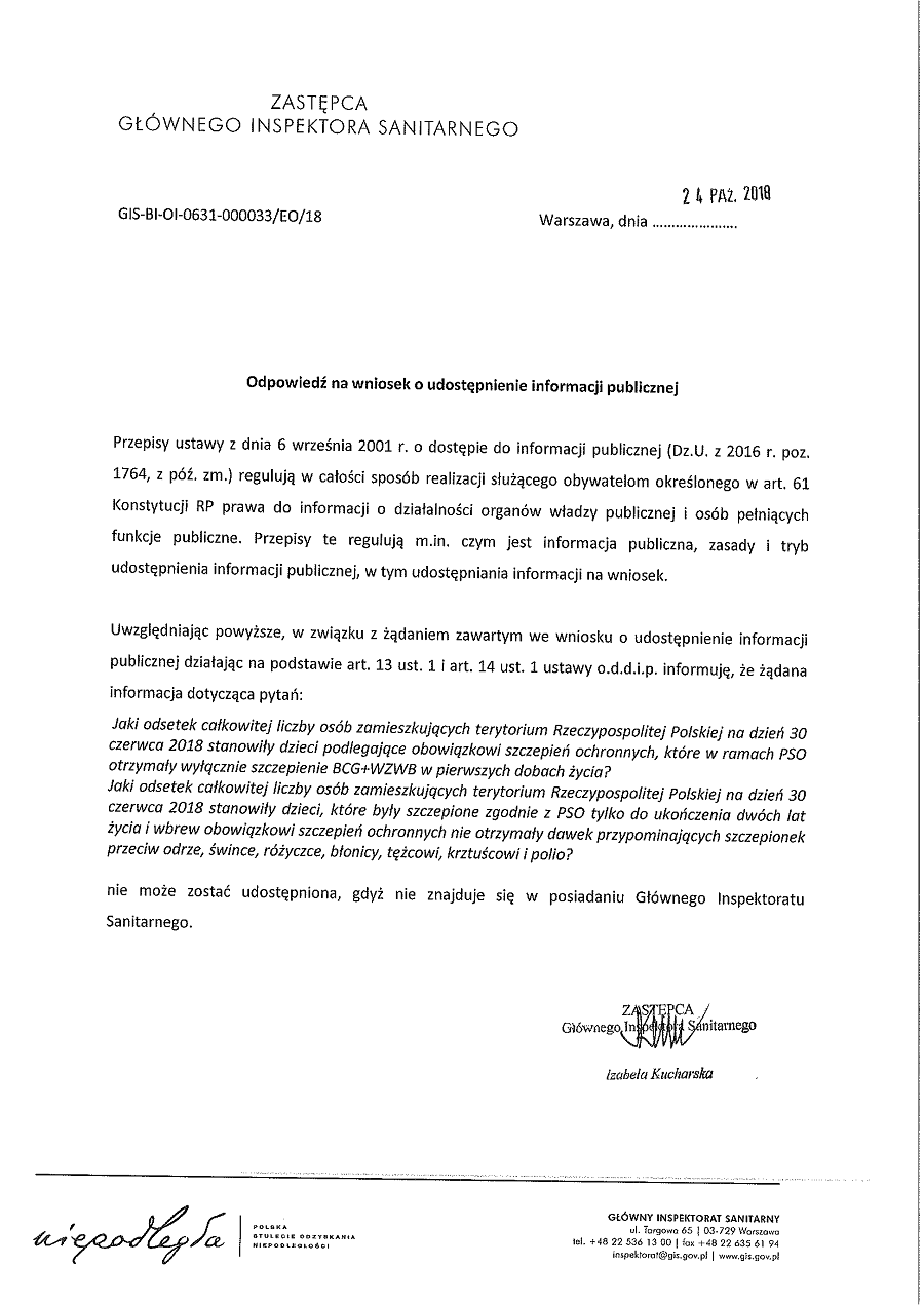 Szanowny Panie Główny Inspektorze Sanitarny.