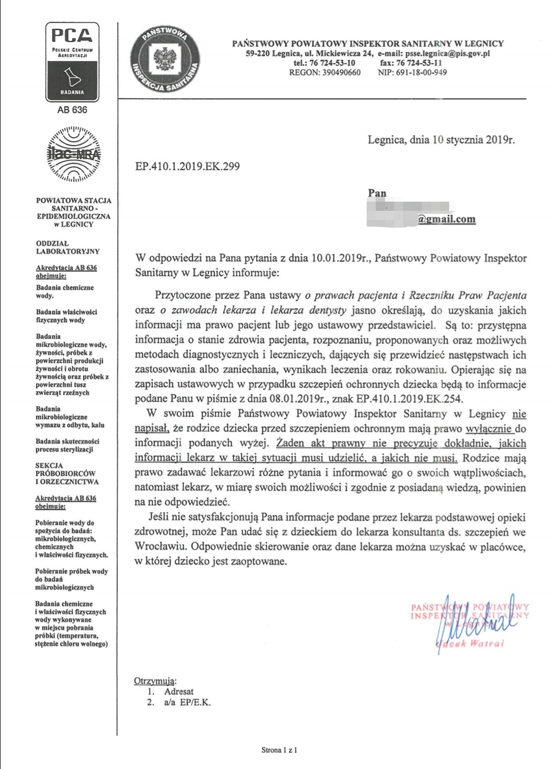 informuję, że decyzje dotyczącą wycofania z obrotu lub wstrzymania w obrocie danej serii produktu leczniczego, w tym szczepionek podejmuje Główny Inspektorat Farmaceutyczny.