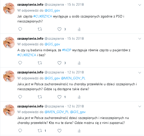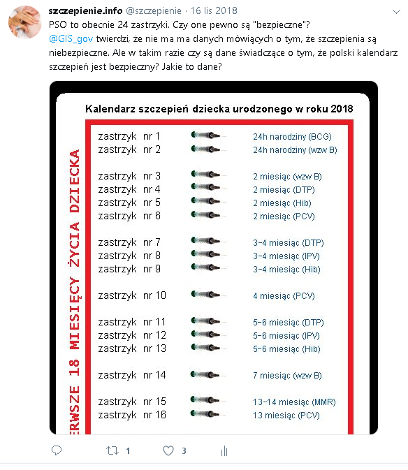 Widzę, że bardzo aktywnie dyskutuje Pan na profilu szczepienia.info na FB i o ile rozumiem jest Pan przekonany, że szczepienia są bezpieczne. Mam do Pana proste pytanie: jak często dzieci w Polsce, szczepione i nieszczepione, chorują na choroby przewlekłe? Potrafi Pan odpowiedzieć? Czy zdaje Pan sobie sprawę z tego, że bez danych, które umożliwiają odpowiedź na to pytanie, wszelkie zapewnienia o tym, że polski Program Szczepień Ochronnych jest bezpieczny, bo ktoś gdzieś kiedyś pobadał sobie trochę jakąś szczepionkę, na zupełnie innych dzieciach, w zupełnie innym kraju, są po prostu jedną wielką kpiną?