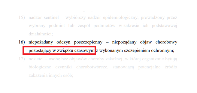 Uwaga: sugerowane w petycji jakoby „pominięcie słowa “czasowo” może wywołać mylne wrażenie, że NOP, to zdarzenie związane przyczynowo ze szczepieniem” jest interpretacją własną autora.
