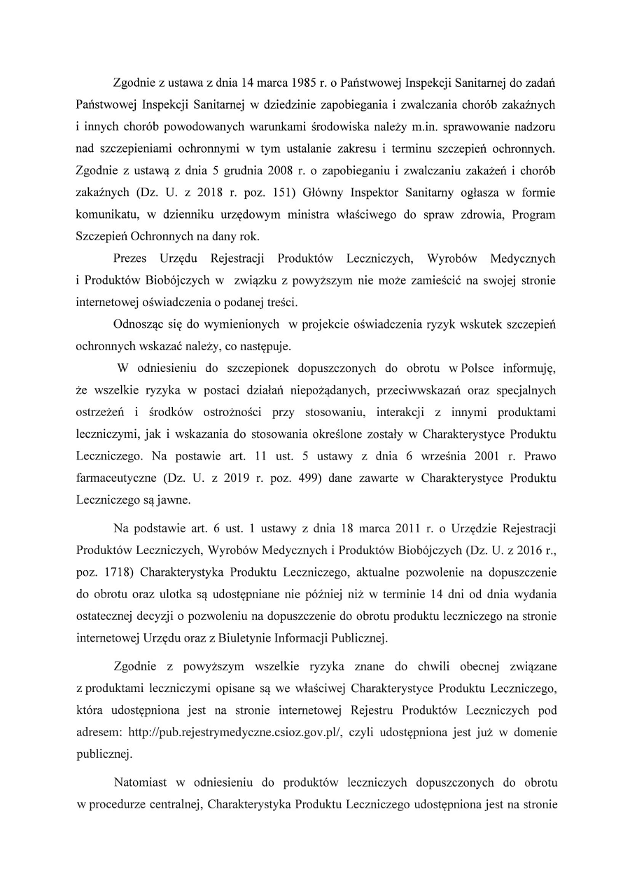 4/ Informacje dotyczące liczby oraz rodzajów niepożądanych odczynów poszczepiennych monitorowanych w ramach działań nadzoru epidemiologicznego dostępne są na stronie NIZP-PZH w biuletynach rocznych „Szczepienia ochronne w Polsce” pod adresem: