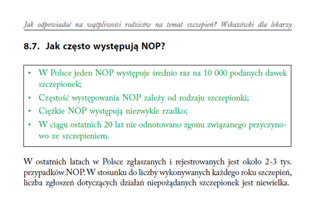 No i rewelacja, ale w jakim celu równocześnie piszecie w poradniku, że NOP to każde zaburzenie stanu zdrowia związane ze szczepieniem?