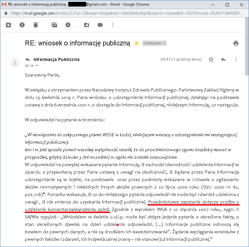 Odpowiedź PZH na moją petycję nie pozostawia żadnych wątpliwości – PZH nie zamierza poprawiać treści poradnika, który nadal może wprowadzać lekarzy w błąd co do sposobu identyfikacji niepożądanych odczynów poszczepiennych.