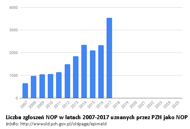 wyjaśniam, że nadzór nad niepożądanymi odczynami niepożądanymi w NIZP-PZH prowadzony jest zgodnie z Rozporządzeniem Ministra Zdrowia z dnia 21 grudnia 2010 r. w sprawie niepożądanych odczynów poszczepiennych oraz kryteriów ich rozpoznawania (Dz.U. 2010 nr 254 poz. 1711). Informacje na temat liczby NOP udostępniane w Biuletynach Szczepienia ochronne w Polsce odpowiadają całościowo definicji NOP wskazanej w rozporządzeniu.
