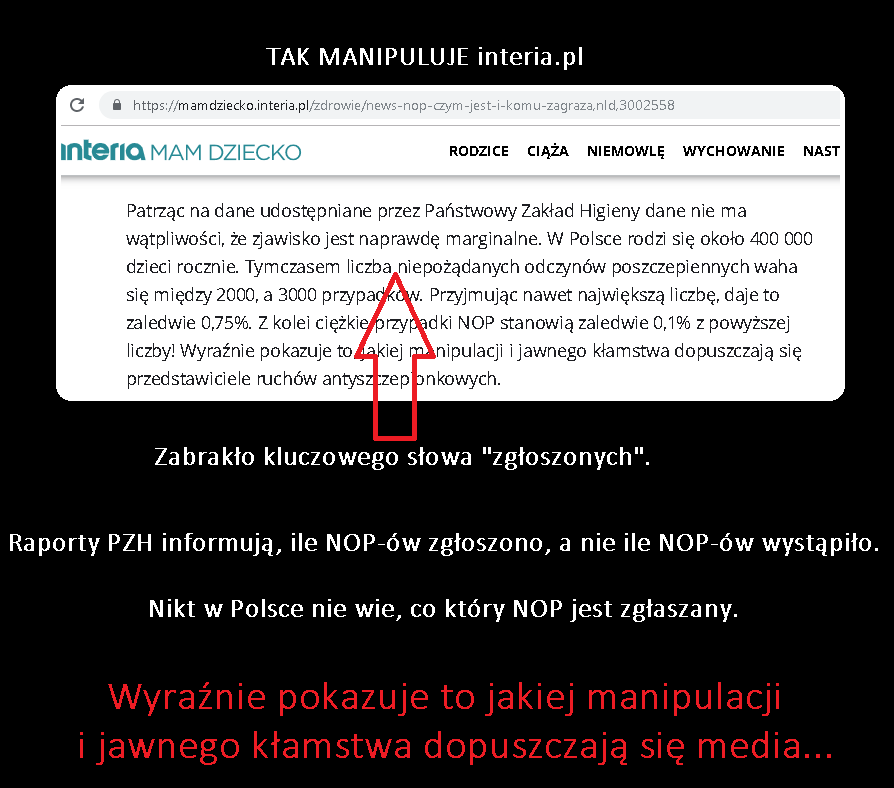 Jeśli natomiast PZH odpowie, że nie wszystkie zgłoszenia NOP uznane jako NOP zostały uznane za związane przyczynowo ze szczepieniem, to w ten sposób PZH przyzna, że świadomie fałszuje statystyki NOP, bo tylko w przypadku zgonów uważa, że NOP jest tylko wtedy, gdy potwierdzono związek przyczynowo-skutkowy ze szczepieniem.