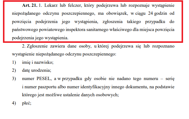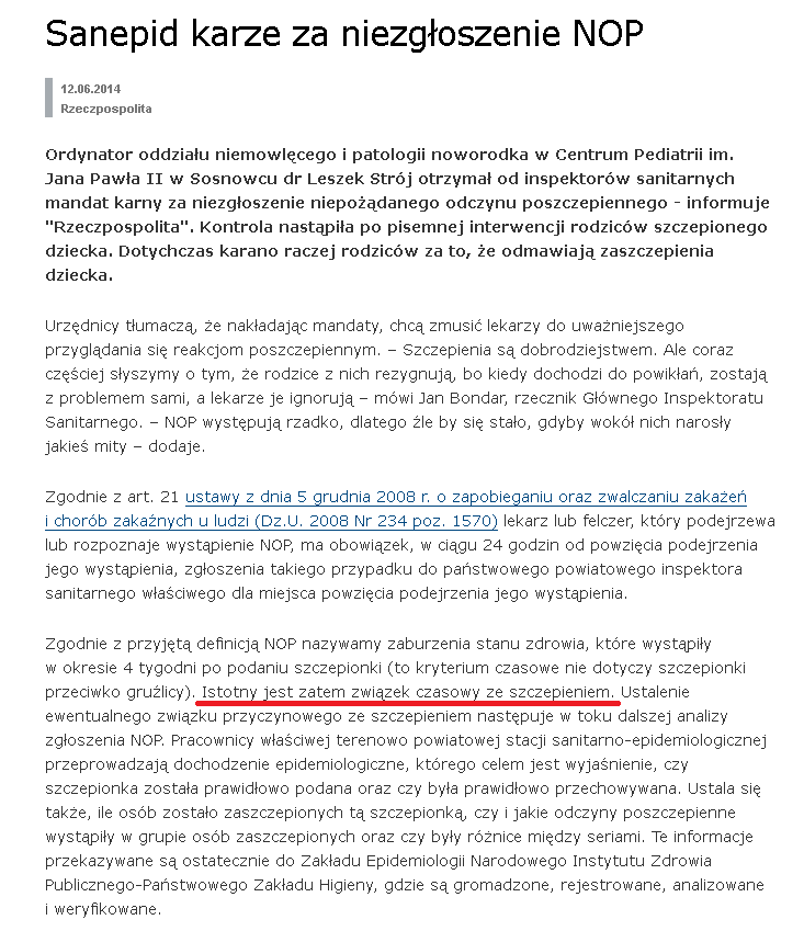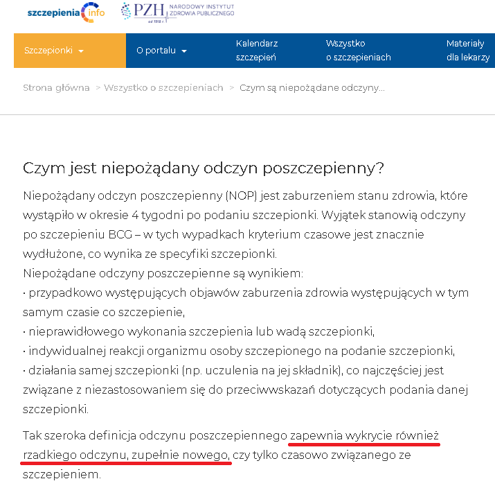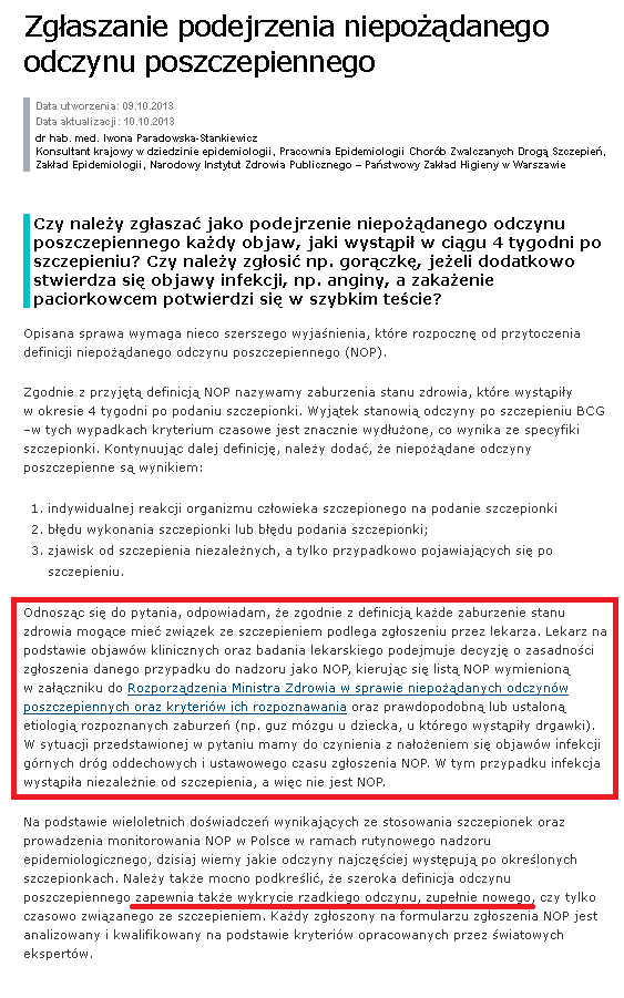 A: Mam rozporządzenie w sprawie NOP-ów no i wszystko, co się do 4 tygodni po szczepieniach dzieje, to jest NOP i trzeba to zgłosić.