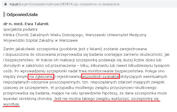 L: Udowodnione, nie wiem… Tam są takie tego… Udowodnione powikłania neurologiczne po poprzednich dawkach tej szczepionki.