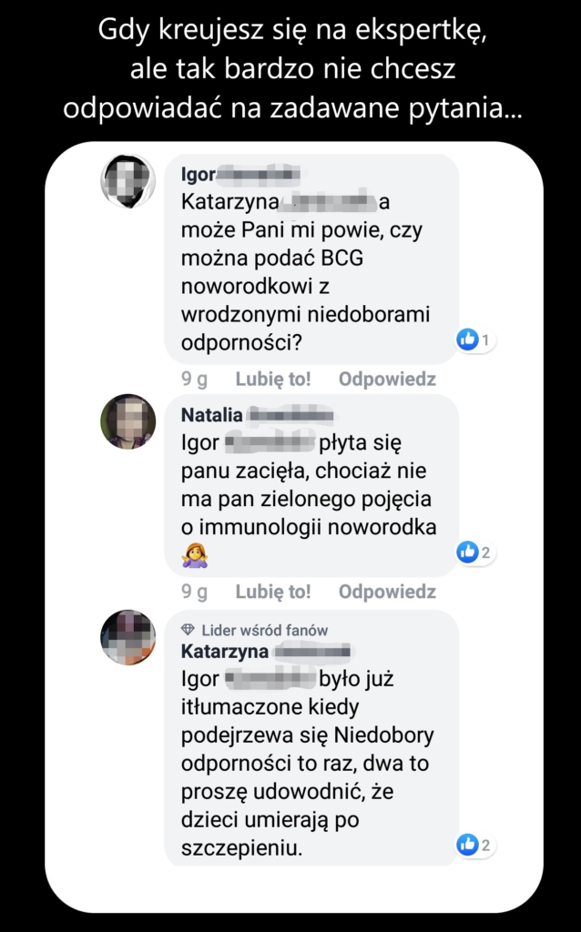 A: No i ostatnio wypłynęło w mędrkach internetu, że takie dziecko sobie zmarło po szczepionce. Może nie po szczepionce, ale zmarło.