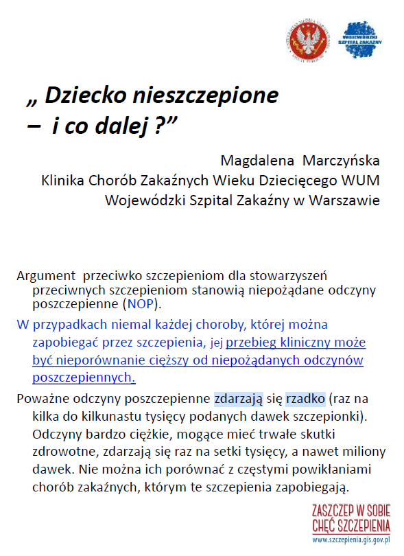 [W razie gdyby szczepienie zagrażało życiu, to od razu będziemy go ratować. Ale to wcale nie jest żaden eksperyment na Pani dziecku, ależ skąd…]