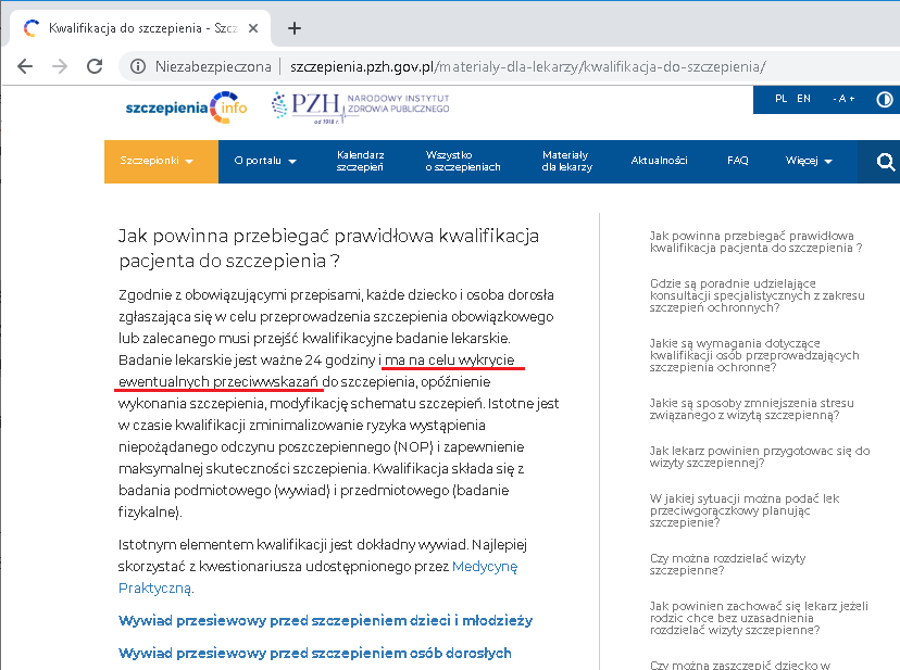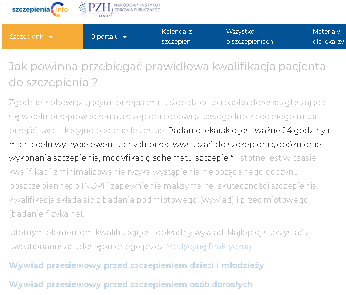 Przed szczepieniem należy przeprowadzić wywiad lekarski (ze szczególnym uwzględnieniem dotychczasowych szczepień i wystąpieniem działań niepożądanych) oraz badanie lekarskie”.