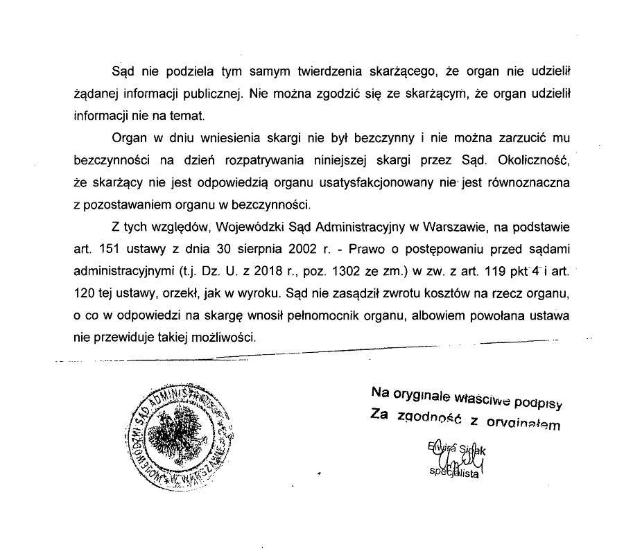 To znaczy, że co? „Weź nas już o to więcej nie pytaj, bo nic nie mamy i nic Ci nie pokażemy”? 🙂