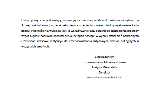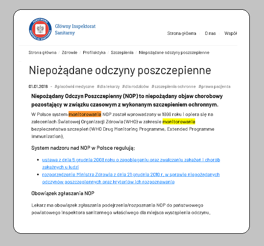 Dalej nie szukam, bo te przykłady już w zupełności wystarczają do udowodnienia, że odesłanie do strony internetowej z listą produktów, na której można sobie co najwyżej odszukać ChPL szczepionki, to nie jest żadna odpowiedź na moje pytanie.