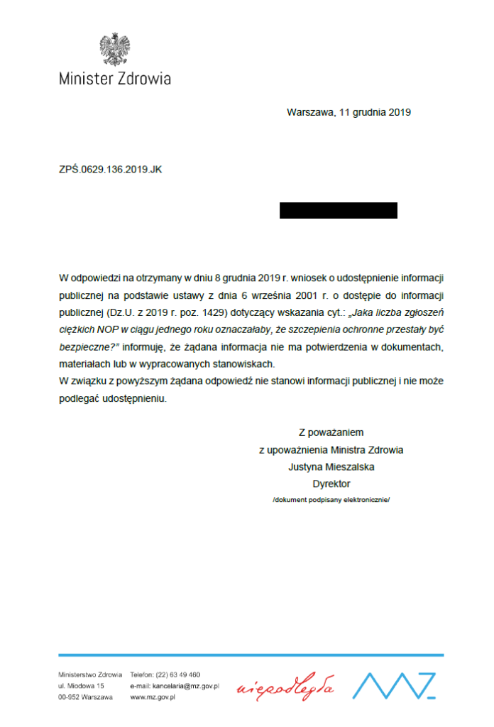 Urząd Rejestracji Produktów Leczniczych do dziś nie odpowiedział na ten wniosek, wysłany 28 października, pomimo że w międzyczasie zdążył już odpowiedzieć na inne zapytania, wysłane w listopadzie i w grudniu.