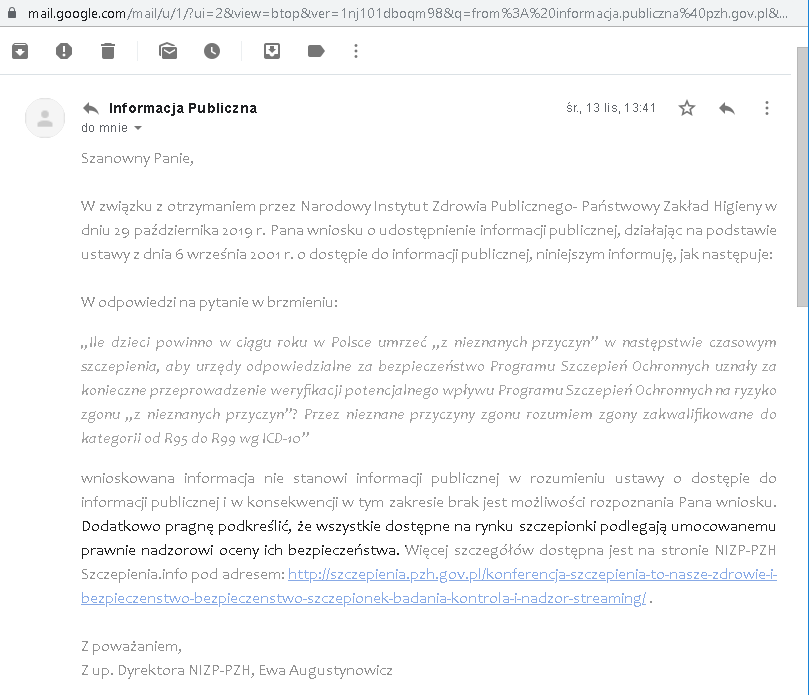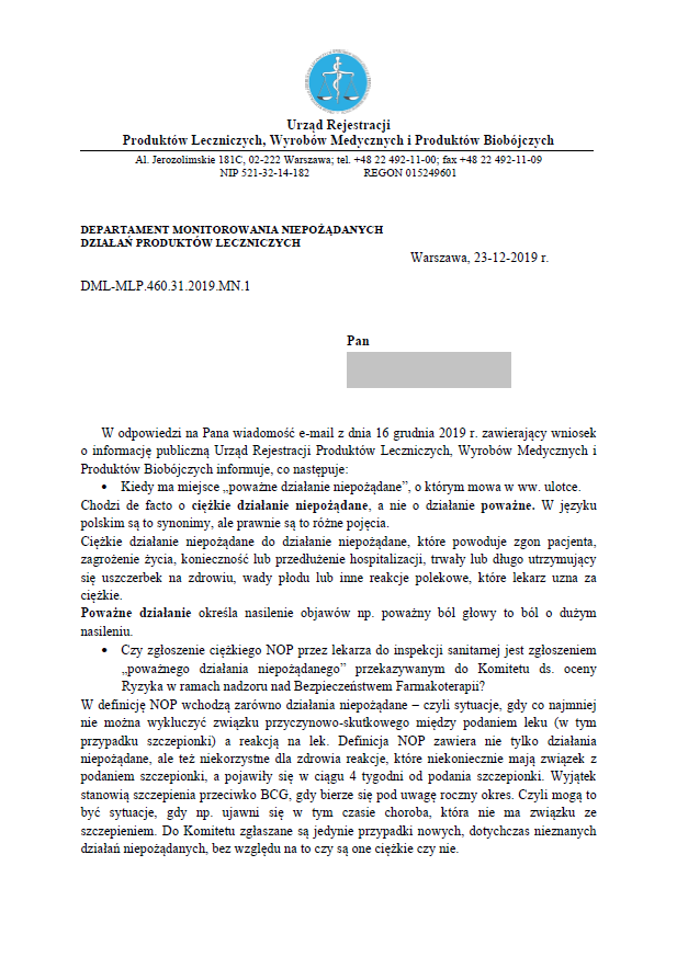 Pod koniec października wysłałem do Urzędu Rejestracji Produktów Leczniczych oraz do Głównego Inspektora Farmaceutycznego wniosek o informację publiczną: