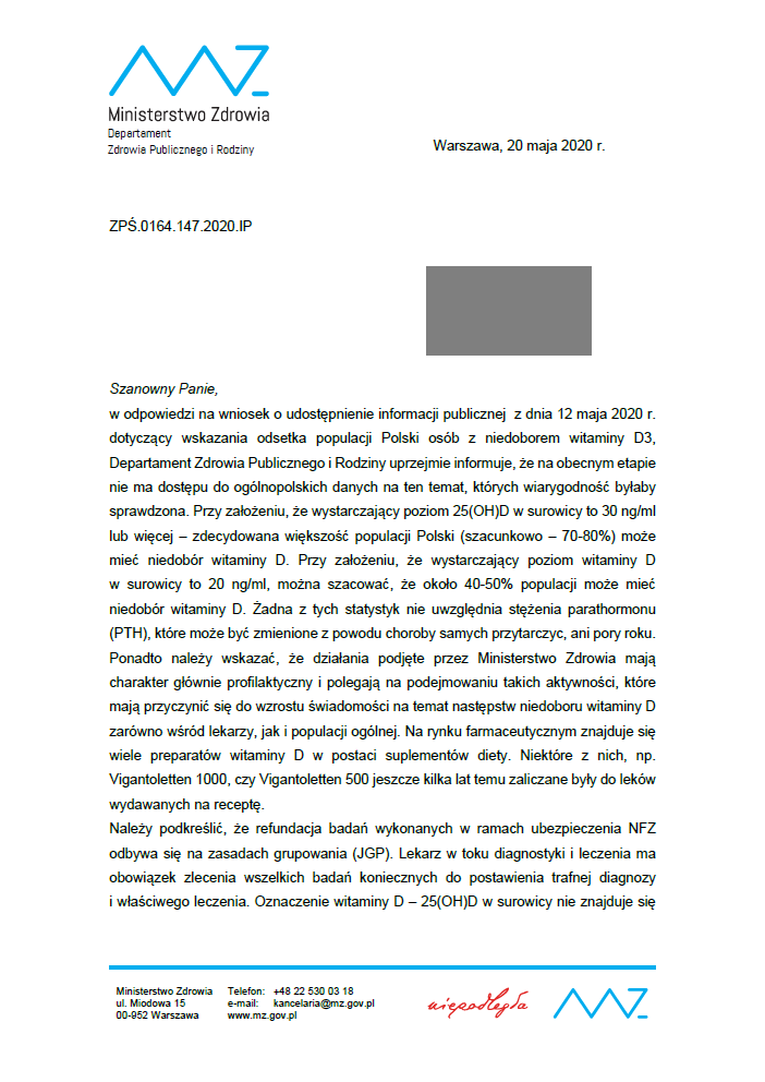 Odpowiedź Ministerstwa Zdrowia jest jeszcze ciekawsza.