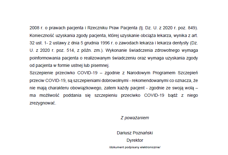 No ale przecież nikogo nie zmuszamy do szczepienia, więc w czym problem – wydaje się mówić Pan Dyrektor Poznański.