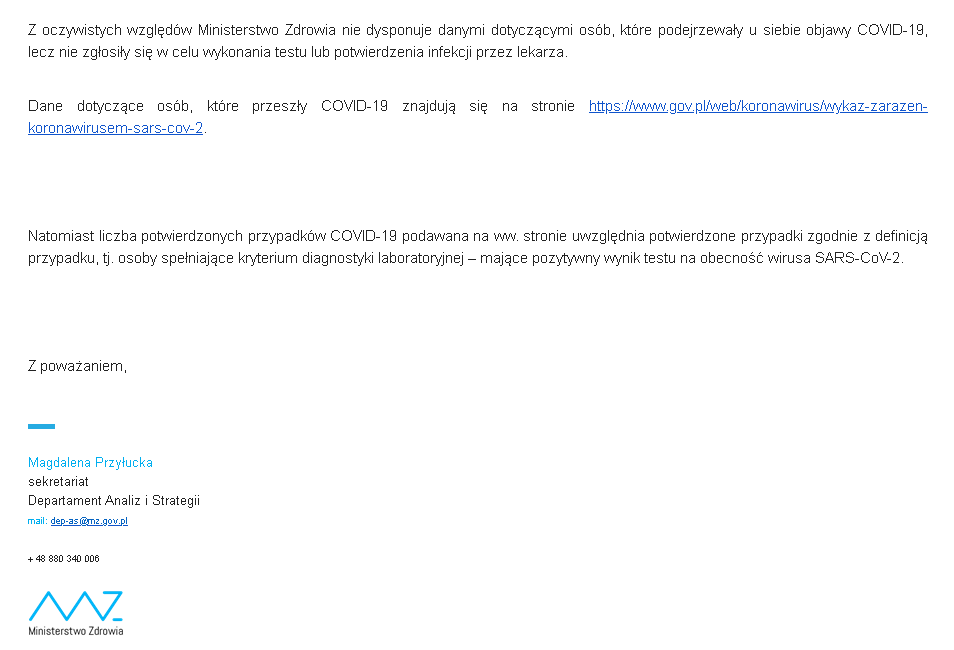 Pierwsza odpowiedź Ministerstwa Zdrowia na to pytanie była następująca:
