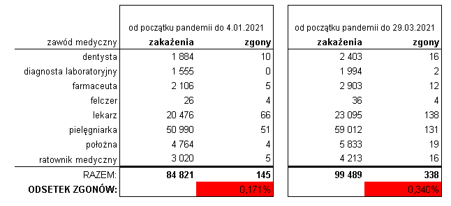 Szczepienia działają, czyli umieralność lekarzy i pielęgniarek bez szczepień i po zaszczepieniu.