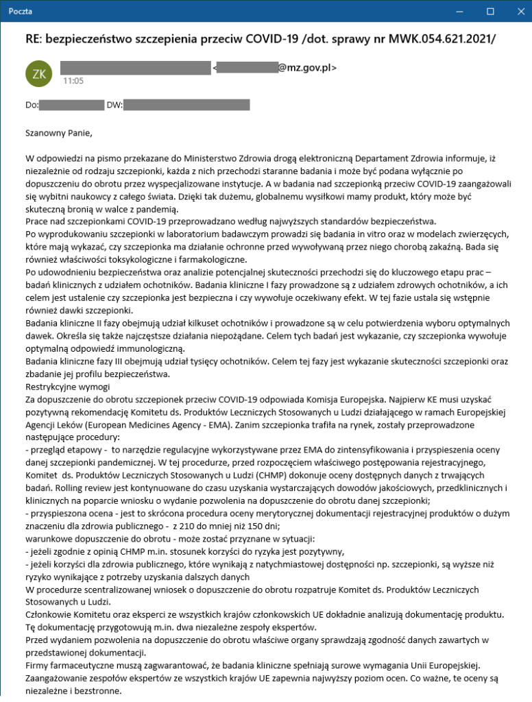 Także petycja o uzupełnienie karty zgonu o rubrykę z datą ostatniego szczepienia została odrzucona. Gdyby zmiany, o które wnosiliśmy, weszły w życie, to dziś Polska mogłaby się pochwalić najdokładniejszą na świecie bazą zgonów po szczepieniu na COVID-19.