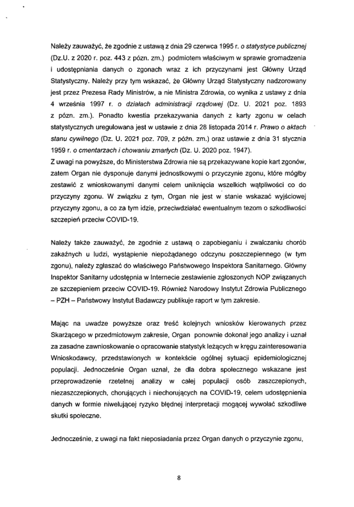 Tymczasem sam rok urodzenia, data zgonu i stan zaszczepienia, to nie są żadne „dane medyczne” podlegające jakiejkolwiek ochronie prawnej (a tym bardziej nie są to żadne „dane osobowe”, bo na ich podstawie nie można zidentyfikować osoby).
