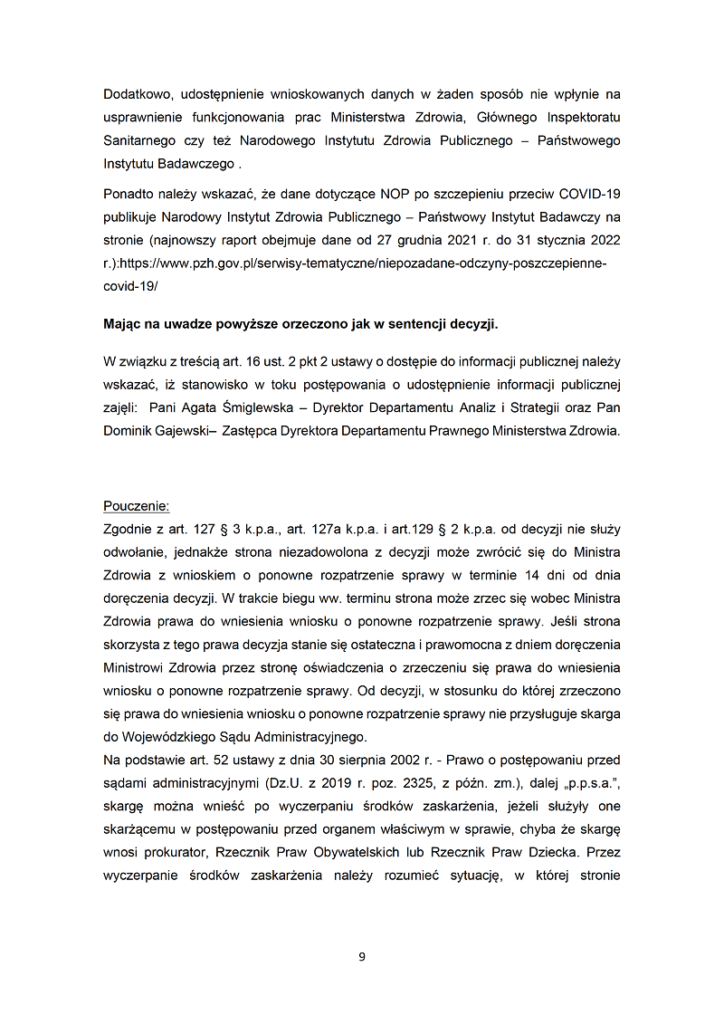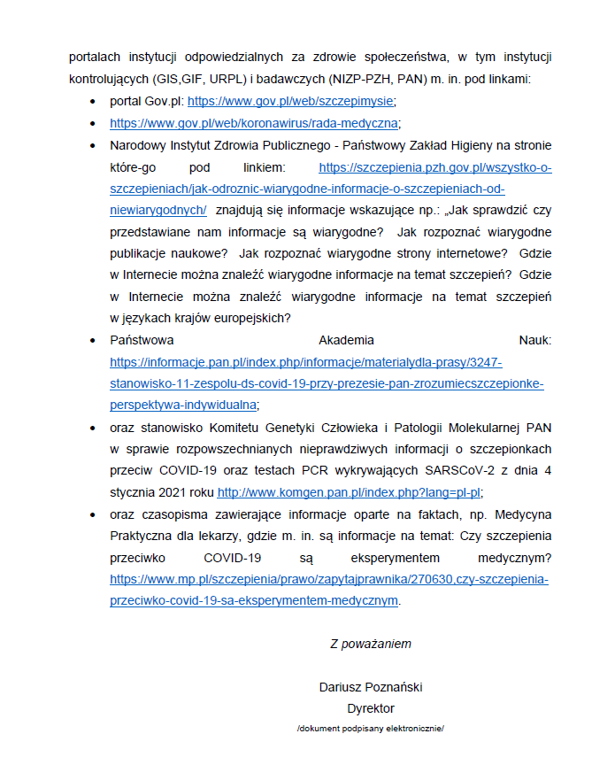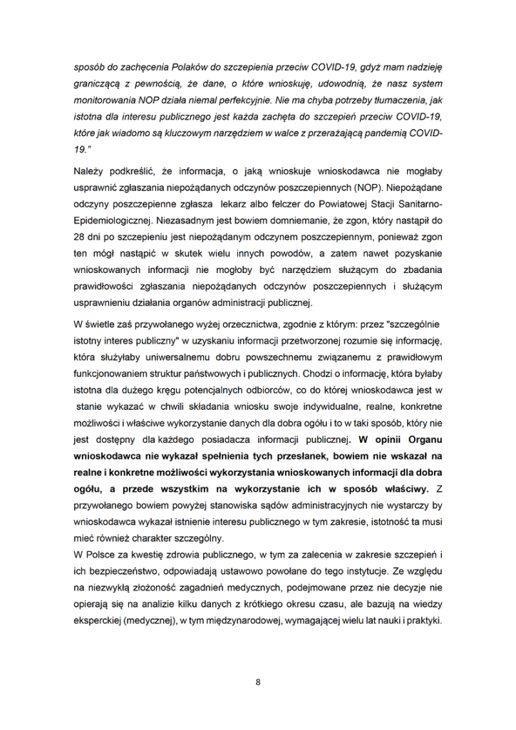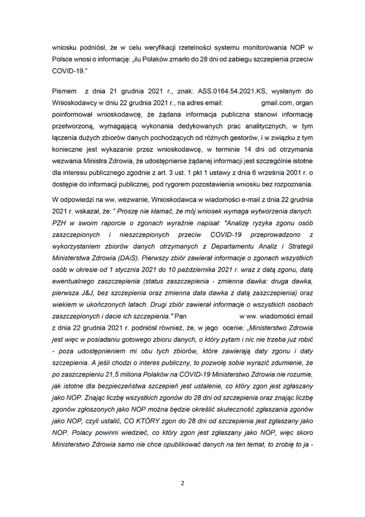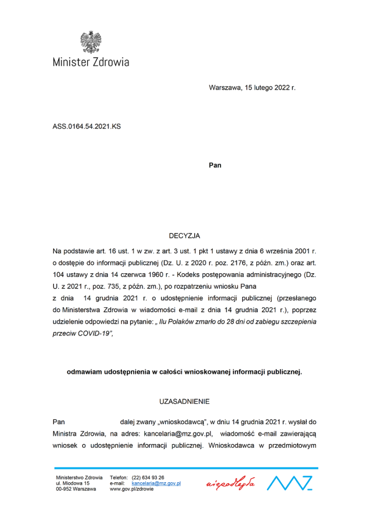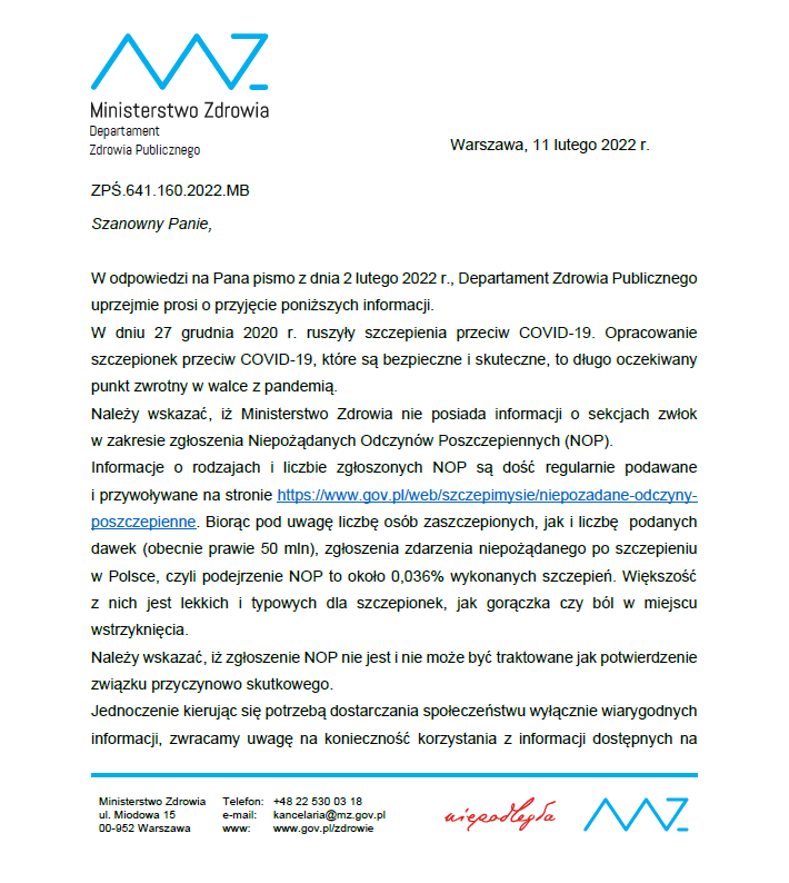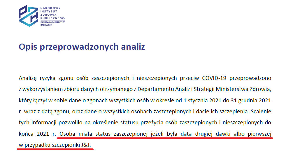 W nawiązaniu do raportu „Analiza ryzyka zgonu z powodu ogółu przyczyn oraz z powodu COVID-19 osób zaszczepionych i niezaszczepionych przeciw COVID-19” dostępnego na stronie internetowej: