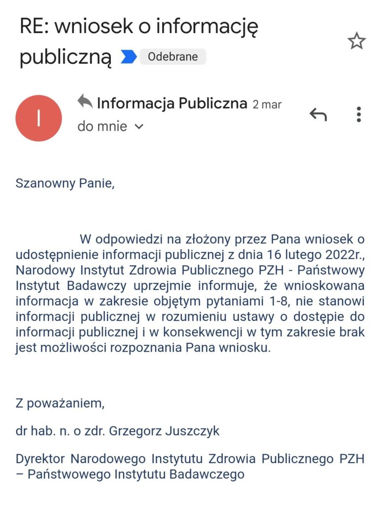 Zachęcam do wysyłania do PZH takich wniosków o informację publiczną: