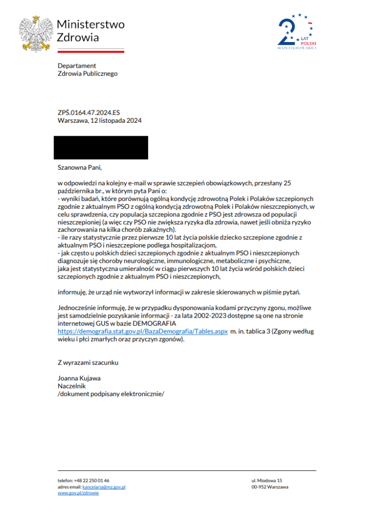 W związku ze zignorowaniem większości pytań, które zadałem we wniosku z dnia 15-10-2024 i na które nie otrzymałem żadnej odpowiedzi pismem Organu z dnia 28-10-2024 sygn. DML-MLP.460.31.2024.MN.2, wzywam Organ do uzupełnienia odpowiedzi o informacje, których Organ mi nie udzielił, ignorując większość treści mojego wniosku z dnia 15-10-2024.