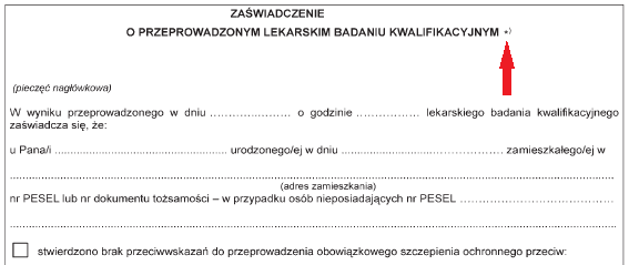 A: Sanepid przysłał mi pismo, więc ja bym chciała zaświadczenie o przeprowadzonym badaniu kwalifikacyjnym.