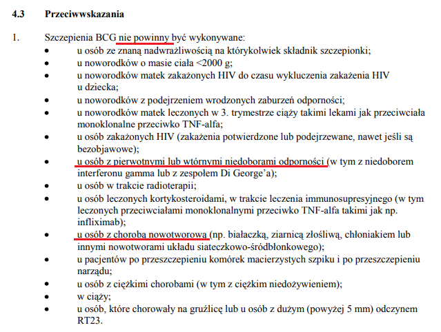 A: Tu pisze [w chpl], że zaburzenia odporności są przeciwwskazaniem.