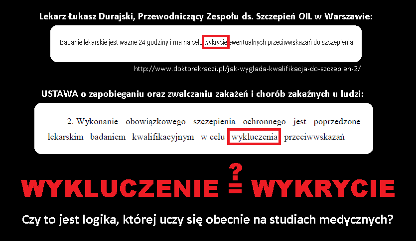 [Typowe podejście lekarza – nie ma pojęcia, że jego obowiązkiem jest wykluczenie przeciwwskazań, a nie „nie widzenie przeciwwskazań”. O wiele łatwiej jest „nie widzieć przeciwwskazań” niż wykluczyć przeciwwskazania, więc w sumie dziwić się lekarzom nie należy]