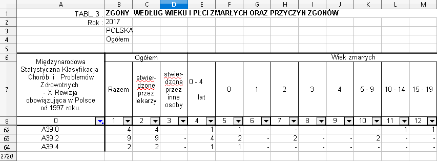 Czyli w grupie wiekowej 0-9 mamy 22 zgony dzieci w ciągu 3 lat, co daje średnio nieco ponad 7 zgonów rocznie, ale w kategorii 0-9, a nie 0-6 lat, bo takich danych nie ma. Więc dla przedziału wiekowego 0-6 ta średnia byłaby jeszcze mniejsza.