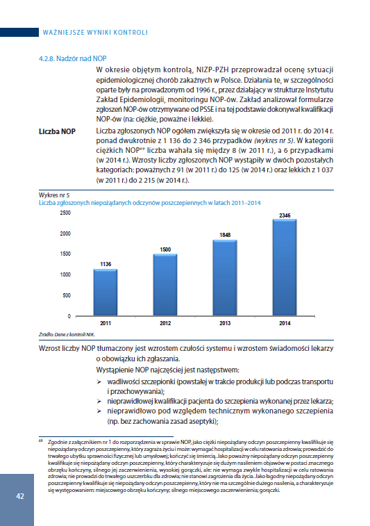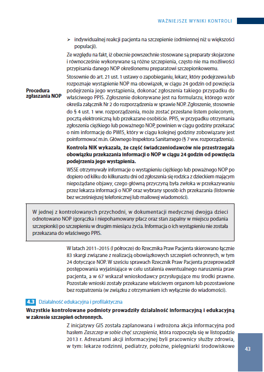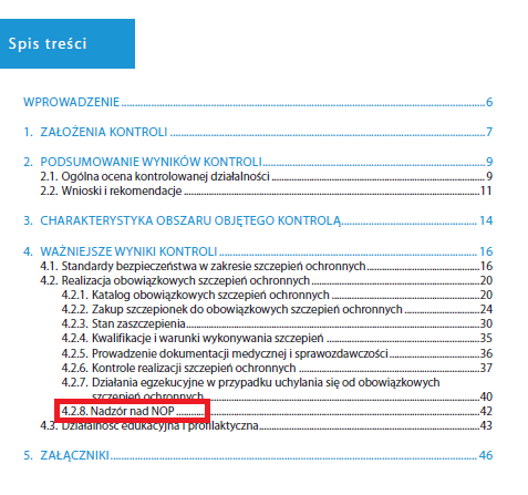Oto jak temat nadzoru nad niepożądanymi odczynami poszczepiennymi został potraktowany przez NIK we wspomnianym powyżej raporcie. Wszystko zmieściło się zaledwie na niecałych dwóch stronach (!), a konkretnie na stronach nr 42 i 43 raportu.