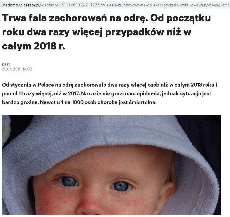 Pomyślcie tylko, jak zareagowałby przeciętny fanatyk przymusowego szczepienia dzieci, gdyby nagle zrozumiał, że jest od dawna robiony „w jajo”, bo być może nawet kilkanaście milionów Polaków to osoby albo w ogóle bez szczepienia przeciw odrze lub jedynie z jedną dawką tego szczepienia, wykonanego 30 lub 40 lat temu…