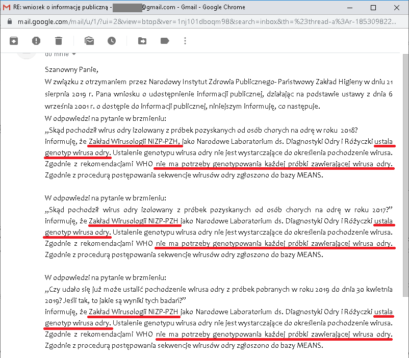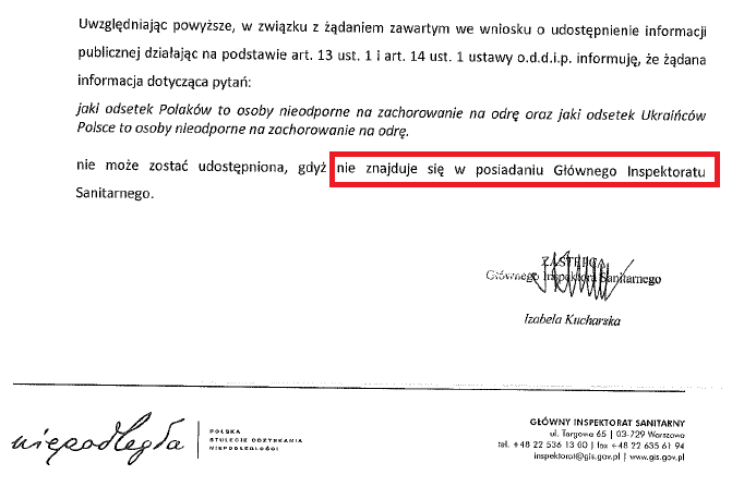 Pytanie „ilu Polaków zostało zaszczepionych przeciw odrze” to jest jeszcze „pikuś”, bo gdyby tym urzędniczym leniom chciało się to policzyć, to pewnie by policzyli. Ale wtedy musieliby tę liczbę udostępnić jako informację publiczną, więc nie policzą, żeby nie udostępniać i żeby wstydu nie było…