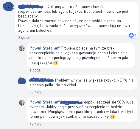 Próbka umiejętności Pana Pawła znajduje się poniżej – komentarze pod postem o „bezpiecznych szczepionkach”.