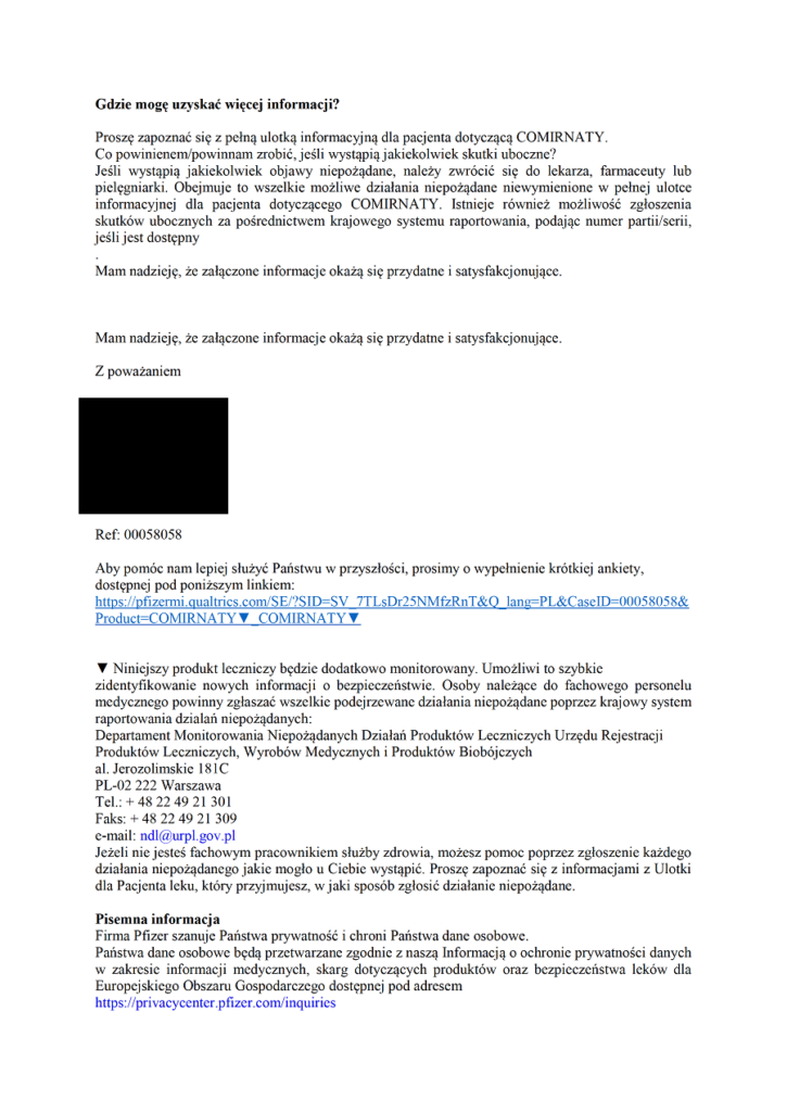 | temat: | Re: Informacja Medyczna firmy Pfizer: Odpowiedz na Pana/Pani zapytanie 00503497 [ref:_00D3kuHav._500686PrFu:ref] |