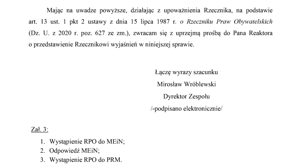 Oto pełna treść odpowiedzi RPO na wysyłane przez nas do niego wnioski.
