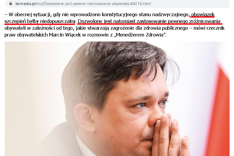 Obecnie obserwujemy swego rodzaju wyścig, w którym „eksperci”, media i rząd niestety przy absolutnej bierności Rzecznika Praw Obywatelskich rywalizują między sobą wymyślając coraz to nowe pomysły, w jaki sposób utrudnić życie Polakom, aby przymusić ich do szczepienia.