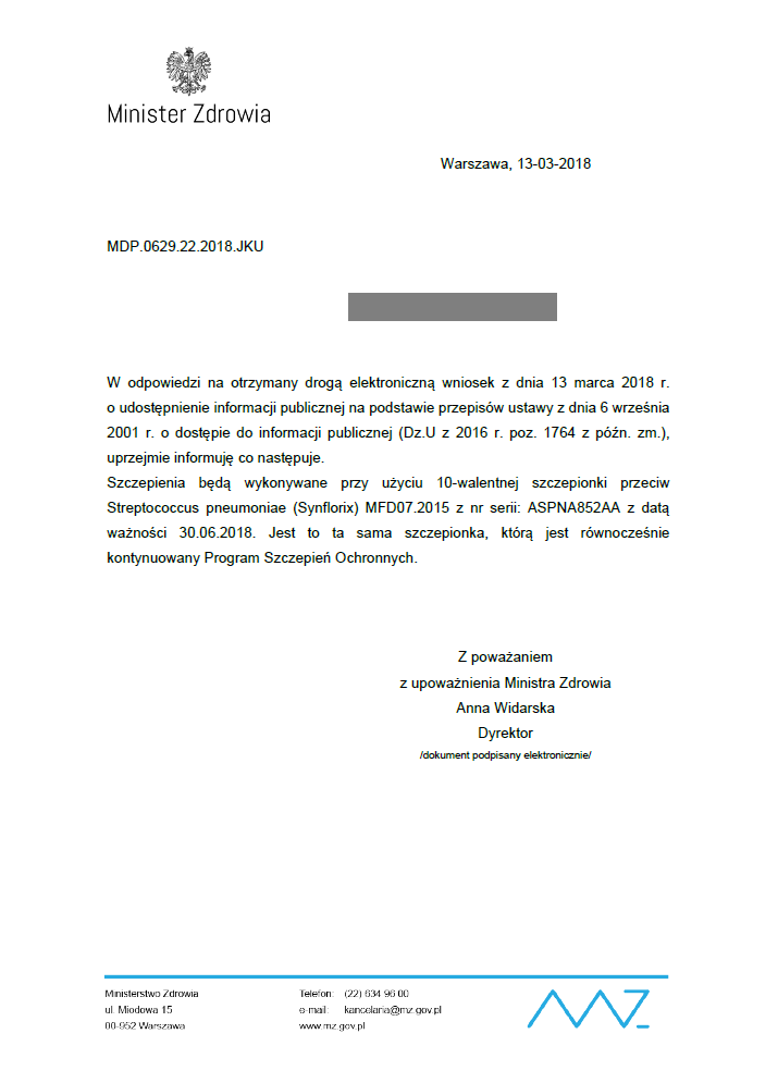 Pod koniec października wysłałem do Urzędu Rejestracji Produktów Leczniczych oraz do Głównego Inspektora Farmaceutycznego wniosek o informację publiczną: