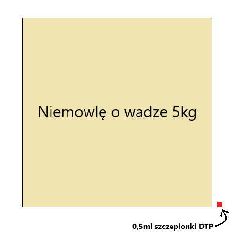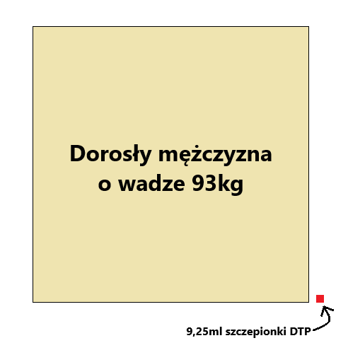 Jeśli niemowlę o wadze 5kg dostaje 0,5ml szczepionki DTP, to dawka proporcjonalna dla wagi ciała 93kg wyniesie 0,5*93/5=9,3ml