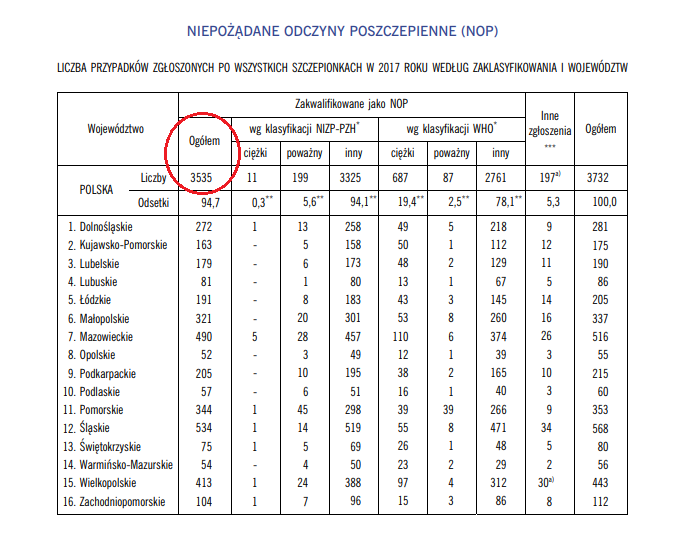Co oznacza „nieklasyfikowalny” związek przyczynowo-skutkowy między NOP, a szczepieniem?
