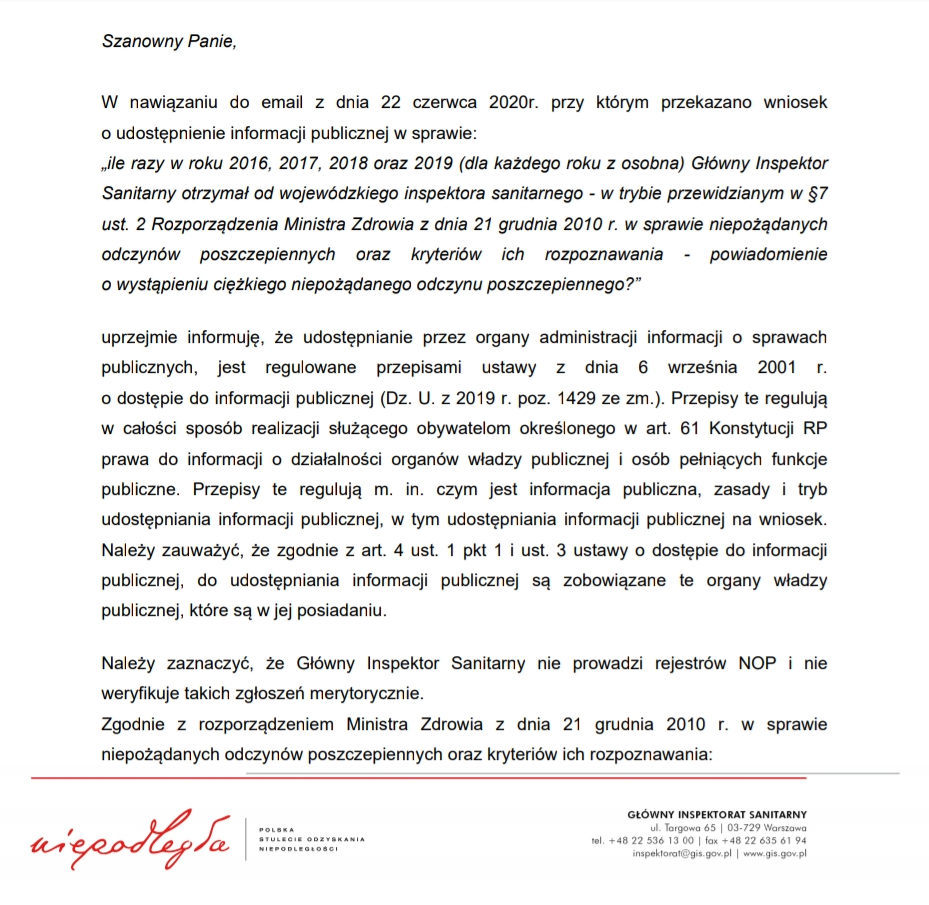 Co oznacza „niemożliwy do zakwalifikowania” związek przyczynowo-skutkowy między NOP, a szczepieniem?